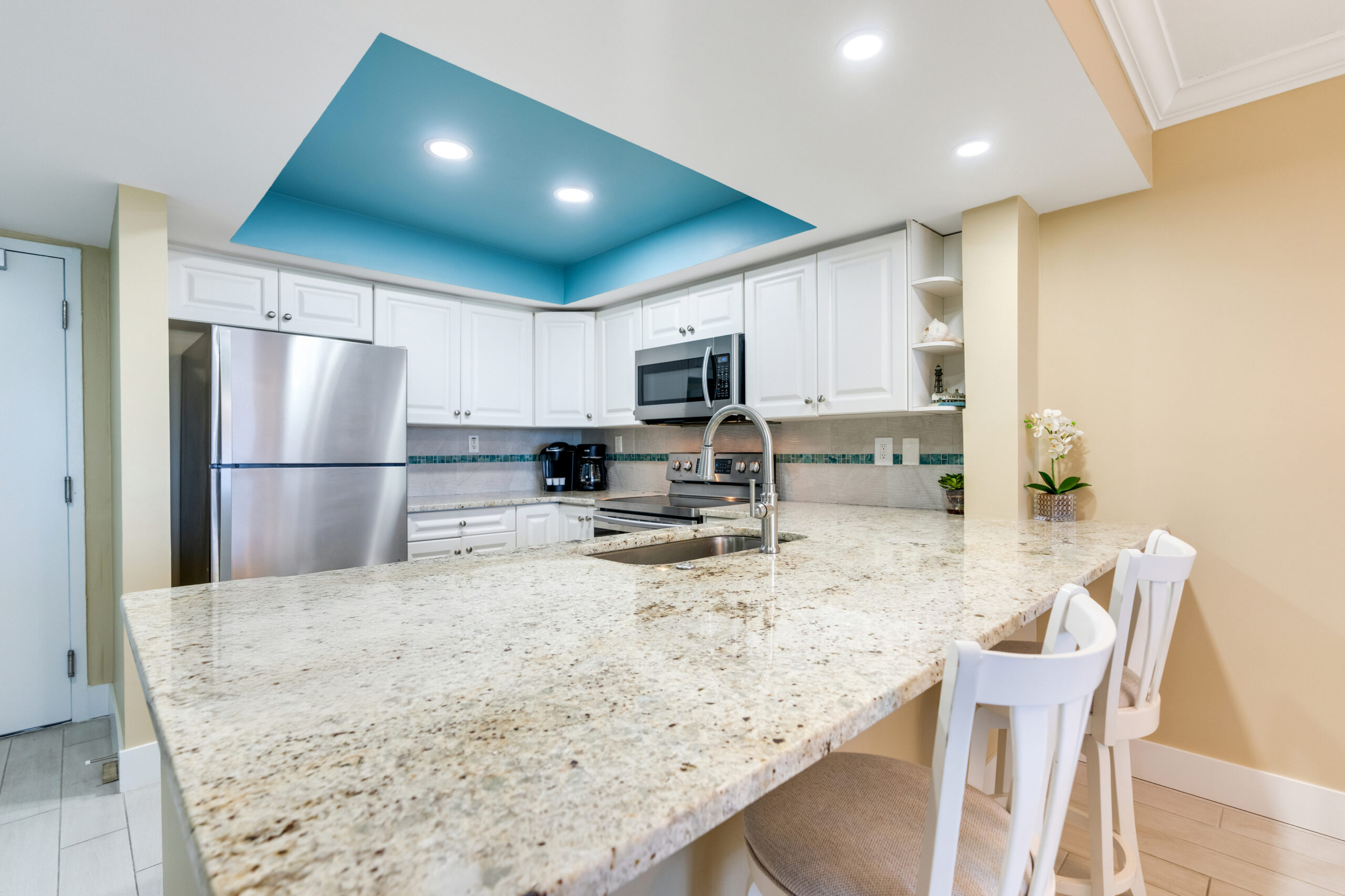 The Tommy Bahama-style living room is tastefully decorated and comfortably furnished. The dining table seats 4, plus there are two bar stools in the kitchen for more casual meals and snacks. High-speed internet connection is available at no extra charge! B307 7045056 and Trip Advisor B307 3990156